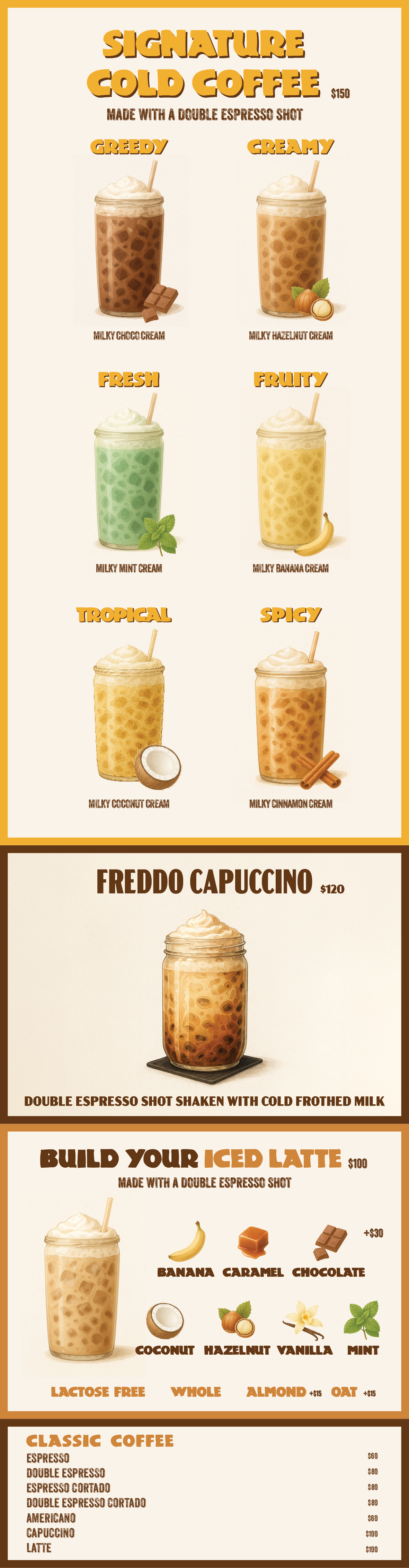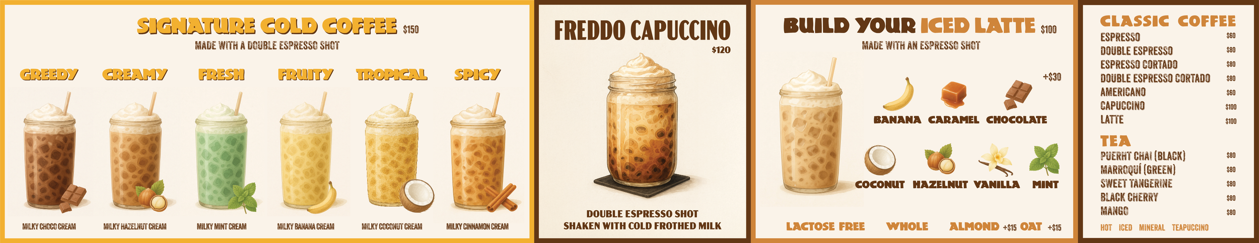 Revisiting one of my first ever freelance projects, creating new visual solutions to an expanded business, now also serving specialized coffees and breakfast.